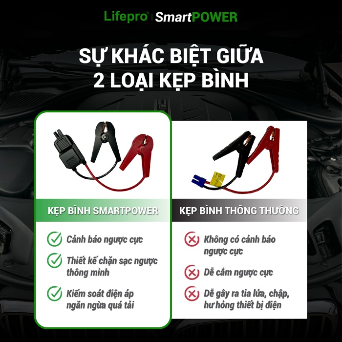 Thuộc dòng 𝙎𝙢𝙖𝙧𝙩𝗦𝗘𝗥𝗜𝗘𝗦 cao cấp đến từ thương hiệu 𝐋𝐈𝐅𝐄𝐏𝐑𝐎, 𝙎𝙢𝙖𝙧𝙩POWER là thiết bị bơm lốp kèm kích bình đa năng, thiết kế nhỏ gọn nhưng mạnh mẽ, phù hợp cho ô tô, xe máy, xe đạp và các vật dụng hơi khác. Sản phẩm tích hợp màn hình LED đôi, cài đặt áp suất thông minh và chế độ tự ngắt khi đạt mức áp suất mong muốn, đảm bảo an toàn tuyệt đối khi sử dụng. ĐẶC BIỆT, sản phẩm còn có chế độ kích bình trong trường hợp xe của bạn để quá lâu không sử dụng hoặc bình ắc quy đã yếu điện không nổ máy được.