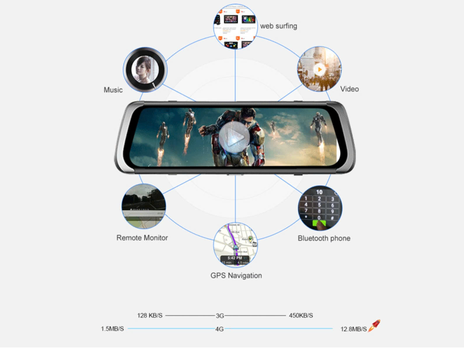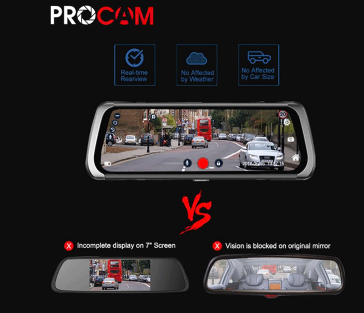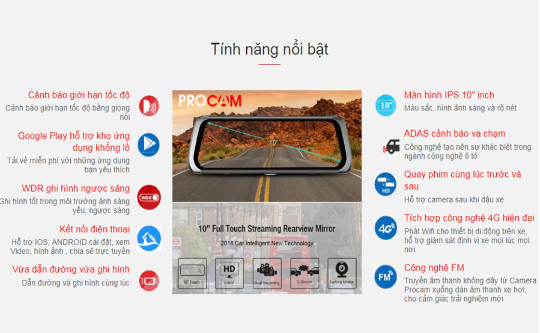 Thông số sản phẩm: Camera hành trình Procam M98 4G Mirror 10inch
