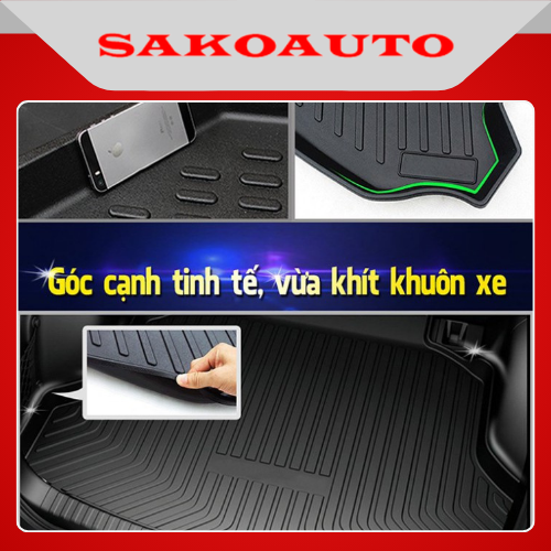 Vật liệu TPO (Thermoplastic Elastomers – nhựa nhiệt dẻo đàn hồi). Đó là một loại vật liệu cao cấp chống thấm nước, không mùi, có độ bền – độ đàn hồi cao. Được áp dụng vào nhiều lĩnh vực y tế, thể thao, nhựa trên taplo ô tô… Sản phẩm được đúc nguyên khối. Được định hình 3D theo đúng biên dạng với cốp xe và model xe riêng biệt. Thành cốp có độ cao 5 _10 cm (tùy từng dòng xe). Điều này giúp cho việc giữ nước cũng như các đồ vật ẩm thấm nước) và các vật bẩn khác không rơi ra cốp xe. Việc này sẽ bảo vệ nỉ cốp xe một cách an toàn và tốt nhất, mang lại cho không gian cốp xe của bạn luôn được sạch sẽ và sang trọng.