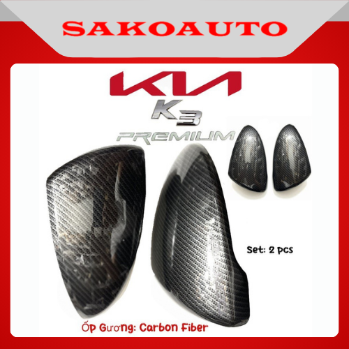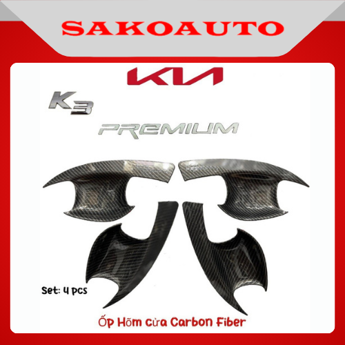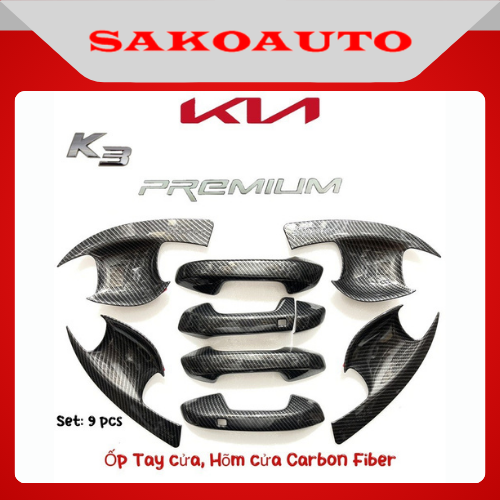 Ốp tay nắm - Ốp chén cửa - Gương - Nắp bình xăng xe Kia K3 2022 - 2025 Carbon cao cấp Phụ kiện trang trí